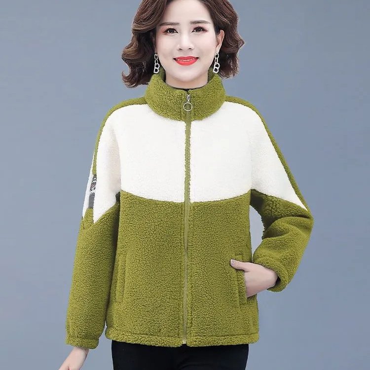 Plush fleece lined zip-up coat for women